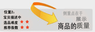 寶貝描述完以后插入關(guān)聯(lián)商品,這個(gè)位置相對(duì)接受度最高。首先,消費(fèi)者能花費(fèi)很長(zhǎng)時(shí)間瀏覽寶貝描述,證明該消費(fèi)者極其喜歡這款產(chǎn)品,購(gòu)買欲望也相當(dāng)強(qiáng)烈。那在這個(gè)時(shí)候,加上相關(guān)產(chǎn)品、熱賣產(chǎn)品或者配套產(chǎn)品推介的時(shí)候,無(wú)論從點(diǎn)擊率、購(gòu)買率來(lái)看,都是明顯提高的,也不容易造成反感。