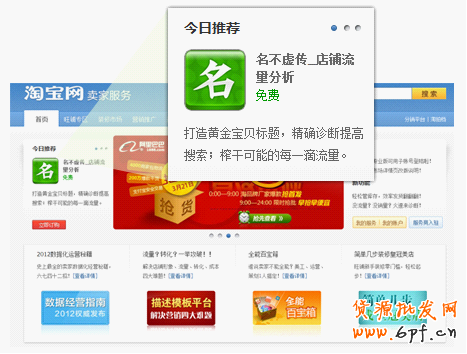 這就牽涉到標題優化的問題了,3月初的某天無意中進入了淘寶賣家服務,在首頁看到淘寶官方今日推薦一個應用《名不虛傳》。如圖: