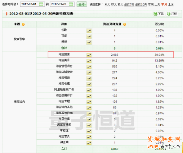 量子統計里面淘寶自然搜索流量提高了很多,更加可喜的是很多關鍵詞來源是優化中選用的詞匯,這說明標題優化是有成效的。