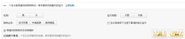 我們在淘寶首頁,隨便搜索一個(gè)關(guān)鍵詞。發(fā)現(xiàn)有這個(gè)提示。這就是系統(tǒng)現(xiàn)在默認(rèn)是給我開啟了個(gè)性化搜索的。所以,現(xiàn)階段個(gè)性化是非常重要的。你不了解它,就OUT了。