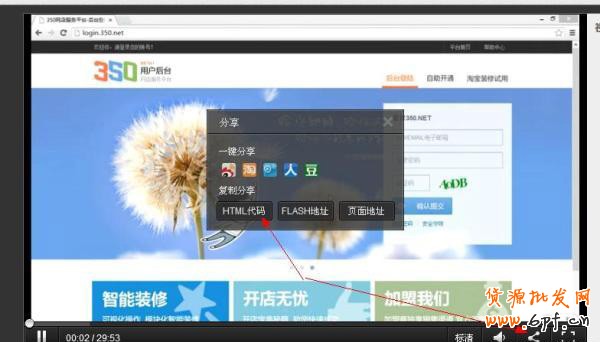 前期需要將視頻上傳到淘寶視頻(kan.taobao.com),實現這一步并不需要開通視頻服務,然后點擊視頻分享按鈕,就可復制html代碼,如下圖