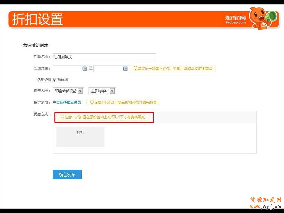 g、設置的折扣低于7折才優先曝光展示噢