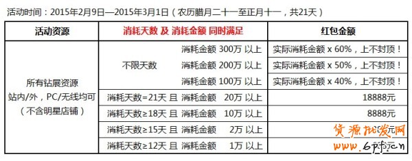 4、獲獎用戶和紅包將于活動結束后15個工作日(2015年3月20日前)發放至鉆石展位賬戶,請關注鉆石展位站內信或旺旺通知;