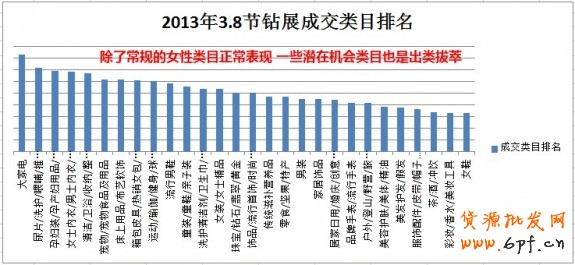 一些潛在機(jī)會(huì)類目:像大家電 母嬰孕婦 床上用品 洗護(hù) 食品 童裝 居家日用 飾品配件 珠寶 家裝等等都是在3.8女人節(jié)的時(shí)候大放光彩;so該些類目的掌柜注意了,抓準(zhǔn)節(jié)日活動(dòng)機(jī)會(huì),提升店鋪成交?。。?br />
