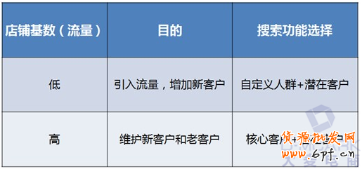 以上是針對不同店鋪基數(shù)與不同優(yōu)化目的,選擇不同搜索人群功能。