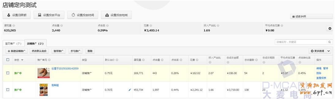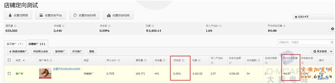 從前面兩個例子也會發現,開啟店鋪推廣定向的計劃更容易獲取流量,所以淘寶/天貓直通車花費預算不是很大的店鋪建議不要把出價出得很高,建議先從幾毛錢開始測試,沒有流量再慢慢加大就好了。而且它本身的PPC也遠遠低于普通的店鋪推廣和店鋪的整體PPC,所以是沒有必要去出很高的價格,避免淘寶/天貓直通車燒爆了。
