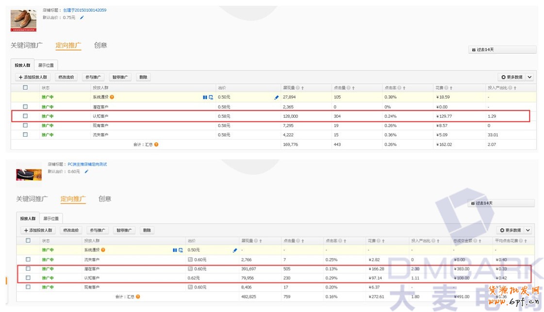 以上兩個店鋪都是屬于流量基礎比較大的店鋪,在潛在客戶、認知客戶、流失客戶、現有客戶出價一樣的情況下,潛在客戶和認知客戶是更容易獲取流量的,而且也是更快帶來轉化的,潛在客戶和認知客戶都是屬于對我們店鋪和寶貝感興趣的客戶,利用店鋪推廣定向,我們又多了一個挽回感興趣客戶的渠道。