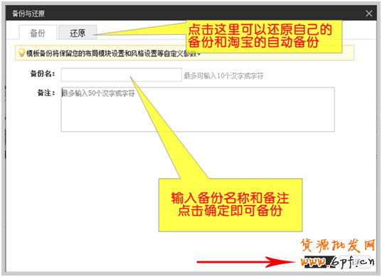 第二步:輸入要填的“備份名”和“備注”。點擊確定,即可完成。