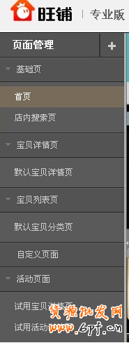 8、進(jìn)入頁(yè)面管理界面,可以對(duì)“首頁(yè)”“寶貝分類(lèi)頁(yè)”等進(jìn)行設(shè)置。