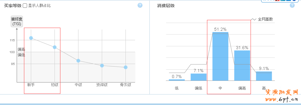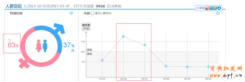 根據(jù)淘寶指數(shù)顯示,孕婦裝在性別問(wèn)題上女性購(gòu)買(mǎi)的人數(shù)明顯大于男性購(gòu)買(mǎi)的人數(shù),而年齡層則大部分集中在25~29,30~34這兩個(gè)年齡層上,消費(fèi)層級(jí)也在中偏高的人群,因此,我們可以根據(jù)這些維度來(lái)嘗試投放測(cè)試,從而引進(jìn)更加精準(zhǔn)的流量,提高點(diǎn)擊轉(zhuǎn)化率。