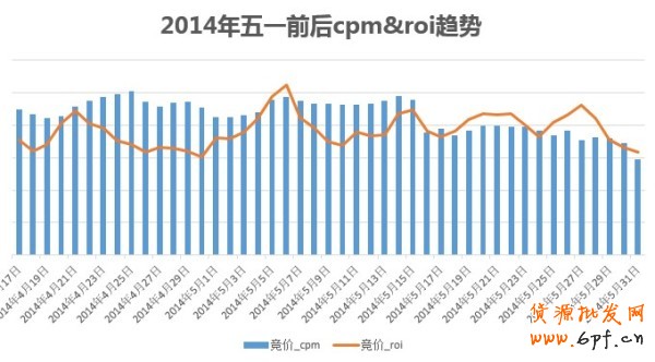 1、14年五一前后鉆展CPM、cpc、ROI趨勢(shì)圖