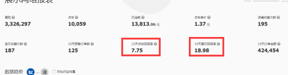 下圖為定向融合之后7天的鉆展投放整體數據,花費13813,成交125筆,點擊單價1.37.點擊回報率7.75,展示回報率18.98.