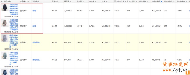 首先,店鋪推廣主要也能夠起到鋪詞,低價引流的效果,所以我們前期測試店鋪推廣圖片的時候,一點擊率高的為主,首次嘗試選用的是直通車單品測試下來點擊率高的幾款寶貝做的推廣圖片。