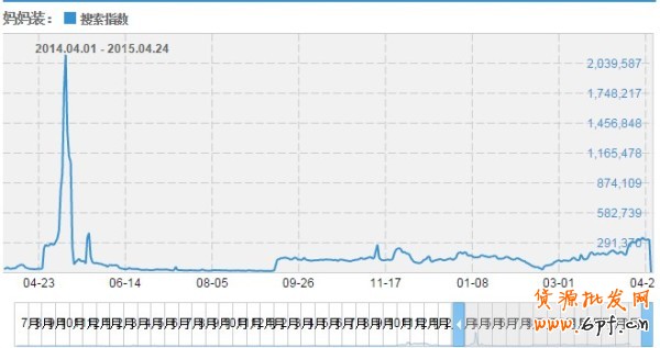 從2014年5月前后淘寶指數(shù)可以看到,從4月28日起,媽媽裝的搜索指數(shù)提升非常大,有10倍的增長,說明這段時間買家購買需求非常大,掌柜們一定要抓住時機。