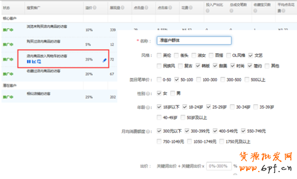 搜索人群分為:核心客戶、潛在客戶、自定義人群