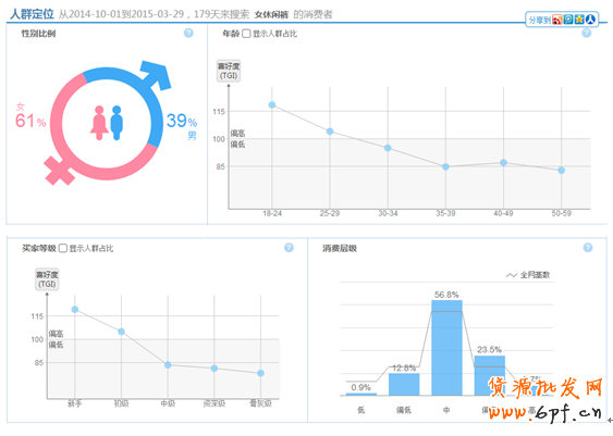 自定義客戶要根據(jù)寶貝情況來進行自定義選擇,如何選擇比較精準的定位,很多掌柜會通過淘寶指數(shù)搜索,來確定人群定位,下面就是“女休閑褲”的人群定位。