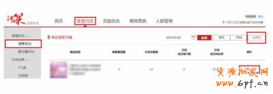 江湖策——渠道引流——搜索優化——根據需要選擇昨天7天30天——選擇對應寶貝立即優化——然后就可以查詢這個寶貝全店或PC或無線端的引流關鍵詞和成交關鍵詞的主要數據。