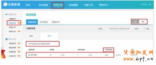 生意參謀——經營分析——流量地圖——流量來源——同行——然后選擇需要的PC還是無線,數據也可以選一般和優秀。