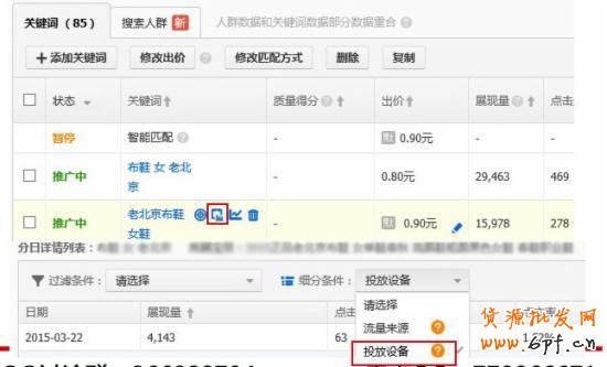 打開推廣中寶貝——關鍵詞——按下一圖點擊——選擇投放設備