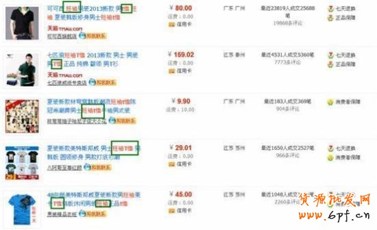 如果搜索的是詞組(我們這里指的是無空格的情況,如果有空格的話,淘寶的搜索引擎會首先遵從用戶的意愿,它會認(rèn)為用戶已經(jīng)分好詞了),淘寶會根據(jù)對以前數(shù)據(jù)的概率分析,自行將詞組分成兩個(或者多個)單詞,然后無序匹配。這時(shí)候只要滿足單字完全匹配規(guī)則即可,沒必要滿足純粹顯示的原則。比如我們搜索“短袖T恤”: