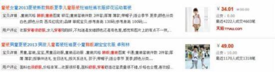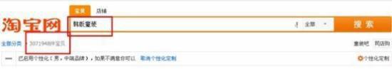 這類關(guān)鍵詞,淘寶會認(rèn)為是一個詞組。如果中間有空格的話,淘寶會直接認(rèn)定為是詞組(比如上面談到的“三 輪車”的例子);如果沒有空格,淘寶會自己進(jìn)行分詞。搜索出來的結(jié)果,分開的兩個(或者幾個)詞可能連在一起,也可能不連在一起,也可能前后順序不一樣。比如我們搜索“韓版童裝”和“韓版 童裝”: