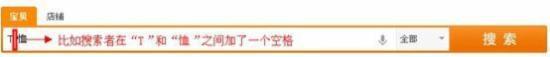 一般搜索者在分詞時(shí)會直接以加空格的形式體現(xiàn),這時(shí)候,淘寶的搜索引擎會首先遵從搜索者的意愿,它會認(rèn)為搜索的人預(yù)先做好了分詞,不管分的合理還是不合理,也不管有沒有意義,淘寶都會按照詞組來對待,不會強(qiáng)行的合并到一起。比如我們搜索“T恤”,在這連個字之間加上一個空格,單字“T”和單字“恤”分開后其實(shí)沒有意義,但是淘寶的搜索引擎不會管這個,出來的搜索結(jié)果中就會出現(xiàn)“T”和“恤”不連在一起的情況,并且當(dāng)做詞組看待,無序匹配:
