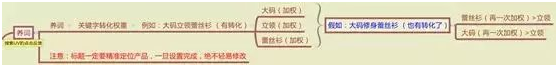 大家仔細看這個圖表,假設加分規則如上,我們會知道,大碼被加了2分,蕾絲衫加了2分,立領加1分,修身加1分。通過這樣的計算,相當于標題當中的某些詞分值高了,整個標題的權重也增加了!這里為什么說整個標題的權重都增加了呢?因為 蕾絲衫 是這個標題當中的中心詞,所有的搜索關鍵詞,都是圍繞著這個中心詞的組合,只要這個中心詞的分值越高,整個標題的權重就會提高。