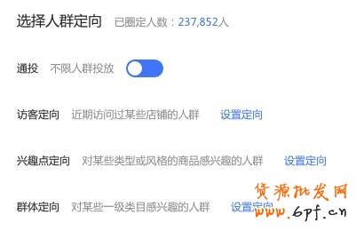 以上就是鉆展新版操作后臺截屏,和現在的底價+溢價模式區別還是有點大的,在設置定向時,通投即不限人群投放可以開啟或關閉,關閉是即表示不需要通投流量。掌柜只要針對定向設置、選擇投放資源位后,就可以獲取全網精準定向流量,點擊成本更可控,投放效果更好。