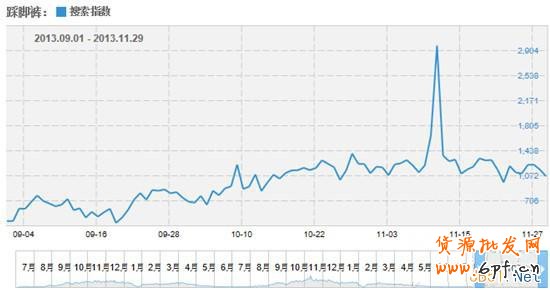我們把下面的小三角拖到去年的11月份,就會出現(xiàn)從去年11月份到今年11月份的一個整體的發(fā)展趨勢。從這折線圖,我們可以看出要是經(jīng)營“踩腳褲”這個類目時,根據(jù)寒冬季節(jié)和需求不斷走低的情況,我們在接下來做運營計劃時,就不是大力囤貨加大力度推廣了,而是把重點放在未來幾個月發(fā)展趨勢更好的商品上。