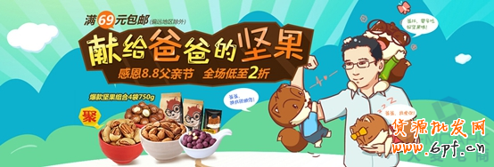 如8.8父親節促銷海報為例,三只小松鼠都配上了對話文案。