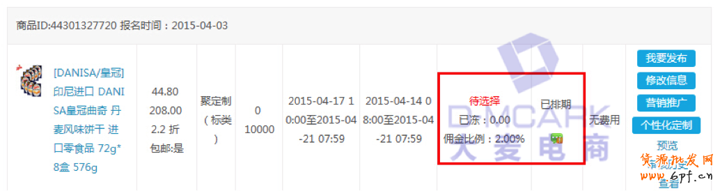 因此店鋪聚劃算活動(dòng)的選款,大麥電商運(yùn)營(yíng)人員選擇在曲奇餅干中頗有知名度的皇冠丹麥曲奇作為活動(dòng)報(bào)名款。進(jìn)行聚劃算商品團(tuán)的報(bào)名。