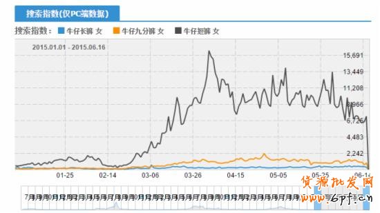 在寶貝選擇上,該寶貝的基礎(chǔ)銷量和評(píng)價(jià)優(yōu)勢(shì)并不是店鋪內(nèi)最好的,在店鋪內(nèi)排名第三,前兩款寶貝是牛仔長(zhǎng)褲和牛仔九分褲。但卻是當(dāng)前最應(yīng)季,通過(guò)對(duì)淘寶指數(shù)的數(shù)據(jù)分析,牛仔短褲當(dāng)前的搜索需求量最高的,遠(yuǎn)遠(yuǎn)超過(guò)長(zhǎng)褲和九分褲的,因此在選擇上最終選擇了牛仔短褲報(bào)名淘搶購(gòu)活動(dòng)。