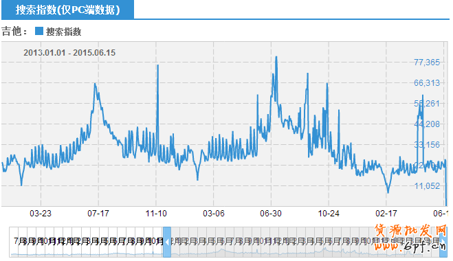 通過對笛子、吉他、塤這3個類目的搜索指數的對比來看,可以看到吉他的搜索指數是遠高于另外2個的,說明吉他的市場需要還是蠻大的。