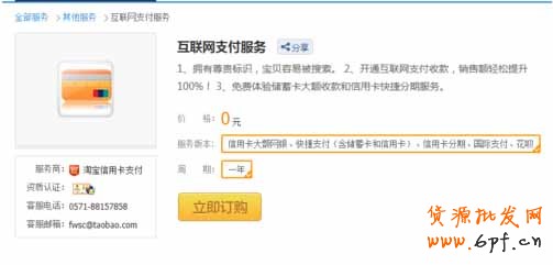 如果滿足條件,單擊進入后會跳轉到賣家服務中的“互聯網支付服務”我們根據相關提示訂購該服務
