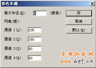 這是執行色彩半調濾鏡后的效果,如下圖所示:
