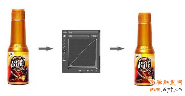 8.新建一個曲線的圖層,調節(jié)瓶子亮度。