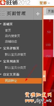 在裝修后臺的左側最下面的“自定義頁面”里直接單擊“同店轉讓”即可。