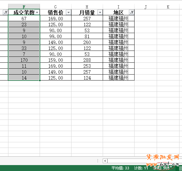 先來看這么一個數據源,目的是做一個簡單的交叉分析,就是想要看一看,在各個品牌下,不同地區的成交筆數的一個匯總。