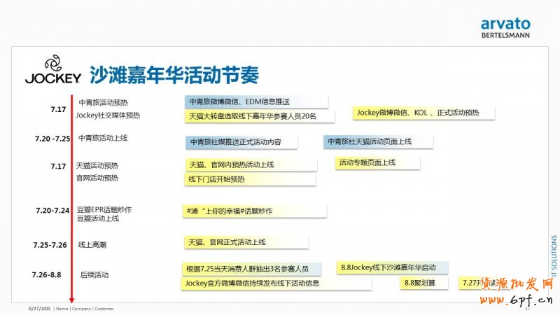8月在線上線下互動(dòng)的基礎(chǔ)上,服務(wù)商幫助品牌置換到了中青旅的合作資源,共同舉辦了沙灘嘉年華的活動(dòng)。因?yàn)槠放苹盍Α⒔】档恼{(diào)性,很適合在夏天推廣沙灘褲這類(lèi)產(chǎn)品。因此契合了中青旅本身的需求和資源,可以共同來(lái)舉辦這樣的活動(dòng)。以這些活動(dòng)資源整體打包,最終置換到了天貓的一系列資源,從而為店鋪贏得了PV、UV的提升和客單的提升。