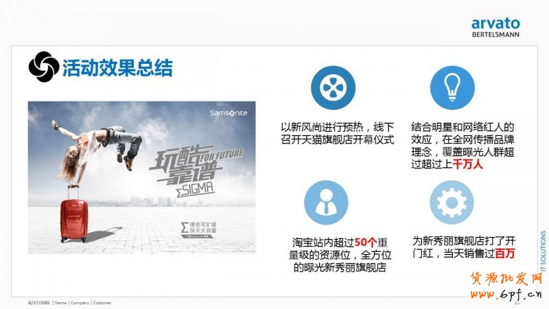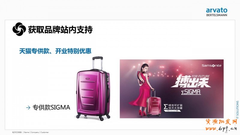 以新秀麗的案例為例。新秀麗是一個(gè)知名拉桿箱品牌,客單價(jià)較高,在天貓的客單價(jià)大約在1500元左右,實(shí)際購(gòu)買(mǎi)人群以30~40歲的客群為主。因此服務(wù)商在操作這個(gè)店鋪的時(shí)候希望讓更年輕的用戶(hù)接受這個(gè)品牌,特別是85后、90后人群,在傳播的時(shí)候也需要更強(qiáng)調(diào)年輕感和時(shí)尚感。因此,利用韓國(guó)人氣明星李敏鎬的代言資源,舉辦了線下的品牌發(fā)布會(huì)和粉絲見(jiàn)面會(huì),打爆品牌傳播。整體活動(dòng)下來(lái)跟天貓置換到了50多個(gè)重量級(jí)資源位,拿到了不錯(cuò)的品牌曝光和流量資源。