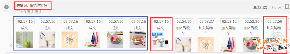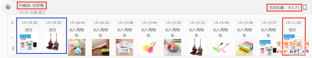 從綜合排序的一欄中,有柱形圖,可以看出“垃圾桶”的價格在6-39元是在用戶喜歡的價位中占比最大。