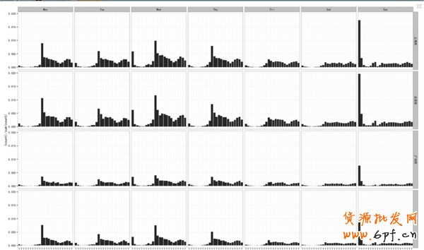 上圖是某店鋪全年間周一至周日(不算雙11和雙12),24小時各時段的購買行為分布,可看出周一到周日的黃金時期。在2013年里,這位賣家周一、周三、周四與周日的生意最好,而周一、周二與周四的黃金時段是早上10點,周三的黃金時段是早上10點與凌晨零點,周日的黃金時段是凌晨零點。