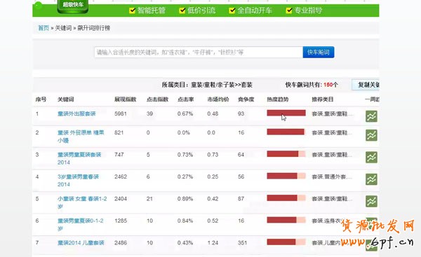 以童裝為例,搜索一下發(fā)現(xiàn),兒童女童裝哈倫褲,數(shù)據(jù)過(guò)去7天從0漲到了12000,競(jìng)爭(zhēng)力卻沒(méi)多大的上漲,只漲到了20,這樣的詞就是一個(gè)很好的飆升詞,而且還便宜3毛錢(qián)。當(dāng)你搜完童裝后,全部跟童裝這個(gè)詞有關(guān)的飆升詞就全部被羅列出來(lái)了。