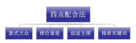 什么叫“四點(diǎn)配合法”?我們把影響直通車的點(diǎn)擊率因素進(jìn)行歸類,根據(jù)重要性、難易操作性進(jìn)行最優(yōu)化操作處理,提取的這四個(gè)因素分別是:款式丶排位丶創(chuàng)意丶關(guān)鍵詞 (如圖)