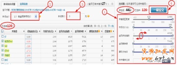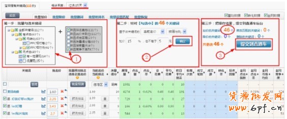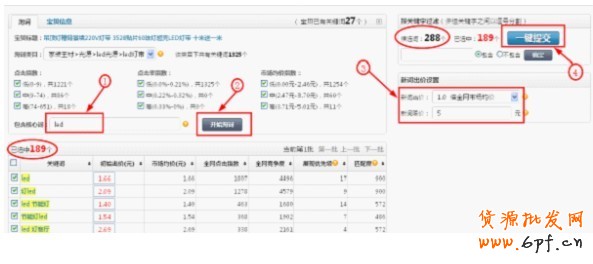 如果我們要對一部分詞進行加價或降價,而又不用軟件去操作時,那就只有在直通車后臺進行批量的修改為統一的價格,方法雖然簡單,但過程也很繁瑣。因為每個關鍵詞在推廣中是獨立的,每個詞的競爭度、全網點擊率、展現指數等都不同,所以,我們在給每個關鍵詞進行合理加價或降價的話,就只能每個去點擊查看,包括它的全網展現、點擊等指數。