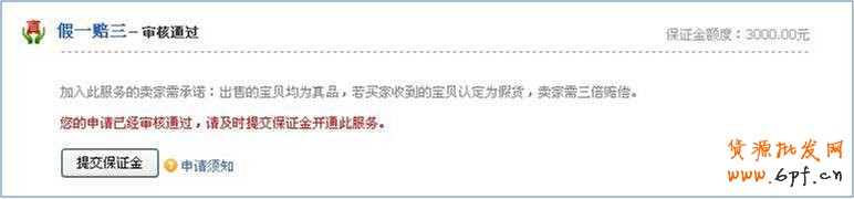 2.選擇假一賠三,小二人工審核通過以后需要交納特色服務保證金