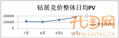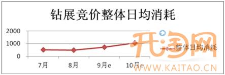 鉆展競(jìng)價(jià)整體日均PV。7月到8月鉆展有效廣告主日均PV有著幅度為6%的小幅下滑。8月到9月日均PV隨即增長(zhǎng)達(dá)到29.54%,鉆展日均消耗7月到8月下降了2%,9月到8月增長(zhǎng)達(dá)到46%。可以看出賣家的日均消耗增長(zhǎng)幅度遠(yuǎn)遠(yuǎn)高于日均PV的增長(zhǎng)幅度,意味著PV的競(jìng)爭(zhēng)成本上升。