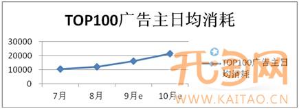 單個(gè)廣告主日均消耗看也呈上升趨勢(shì),TOP100客戶日均消耗目前在15000元左右,預(yù)計(jì)到10月會(huì)達(dá)到20000元,商家可以根據(jù)此數(shù)據(jù)提前做好接下來的日投放預(yù)算。