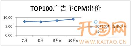 從CPM來看,廣告主對(duì)CPM的出價(jià)持續(xù)上升, 8月的淡季也在上升主要是由于競(jìng)價(jià)廣告主數(shù)量增加導(dǎo)致。預(yù)測(cè)CPM出價(jià)會(huì)一直持續(xù)上升,下個(gè)拐點(diǎn)出現(xiàn)在春節(jié)前后。