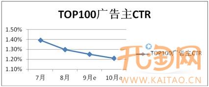 CTR下降是因?yàn)椴糠中逻M(jìn)的大品牌有實(shí)力的商家開始加大預(yù)算拉低了整體CTR。隨著投放的成熟商家越來越多,預(yù)計(jì)在10月中旬后CTR會(huì)有一定幅度上升,大約在1.4%。
